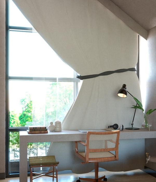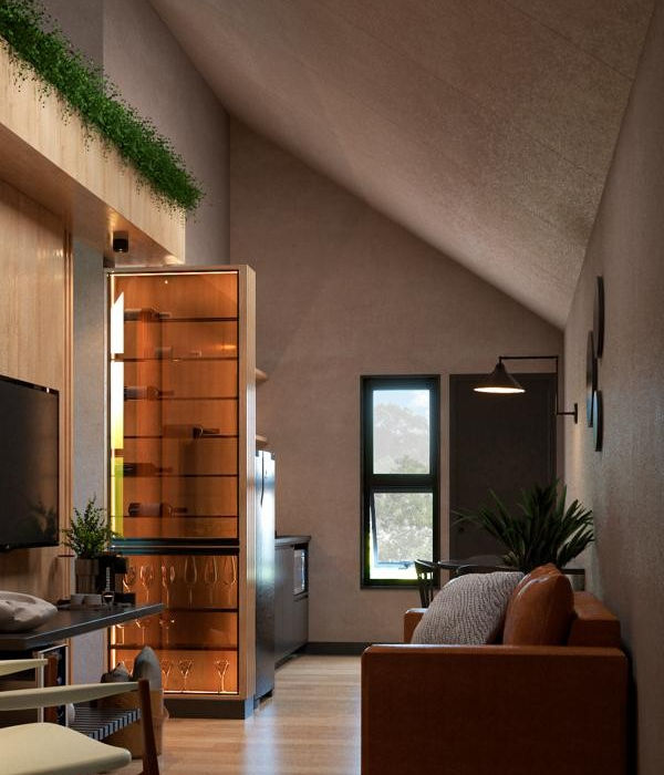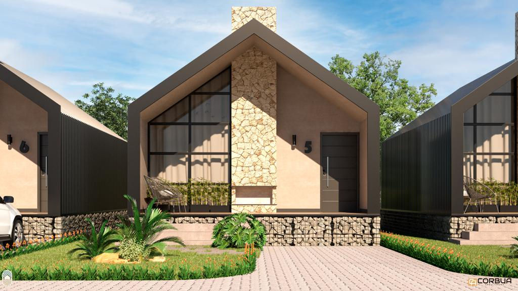 Seu design combina estrutura metálica com pintura automotiva, isolamento termoacústico e fachada em alumínio e vidro temperado 8mm. O interior traz forração em gesso acartonado, paredes em drywall, piso vinílico e cozinha com bancada em granito e móveis planejados.
